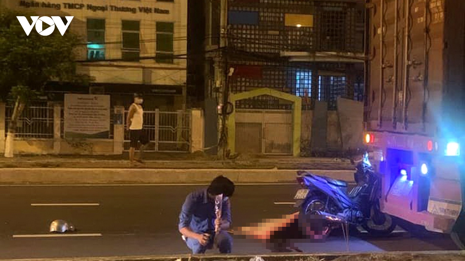 VOV.VN - Tối 7/7, trên đường Ngô Quyền, quận Sơn Trà, thành phố Đà Nẵng xảy ra vụ tai nạn giữa xe máy và xe container khiến người điều khiển xe máy tử vong tại chỗ.