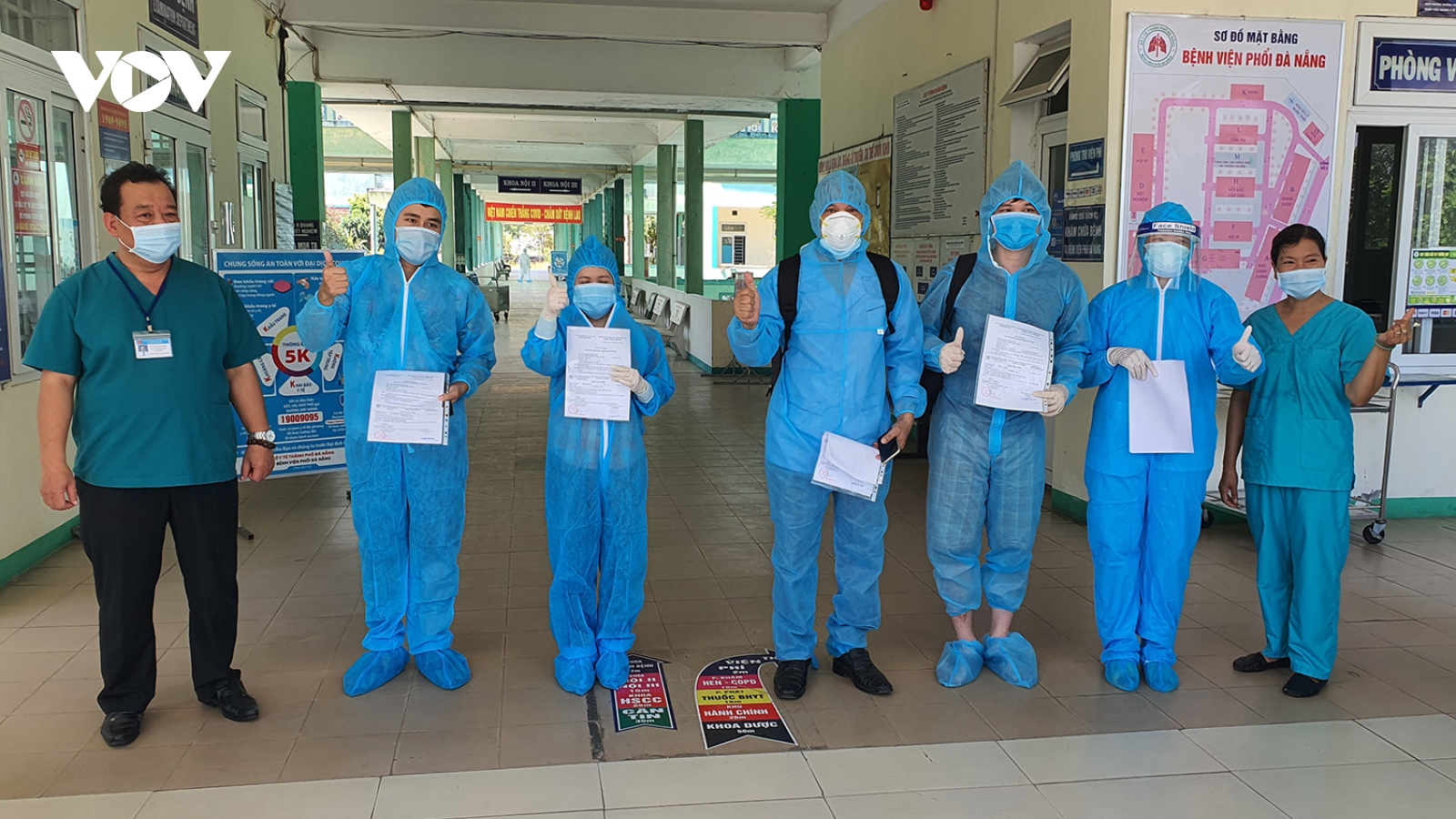 VOV.VN - Ngày 27/5, Bệnh viện Phổi Đà Nẵng và Trung tâm Y tế Hòa Vang công bố hết Covid-19 và cho ra viện 5 trường hợp, đồng thời đưa về tận nhà để tiếp tục cách ly theo quy định.