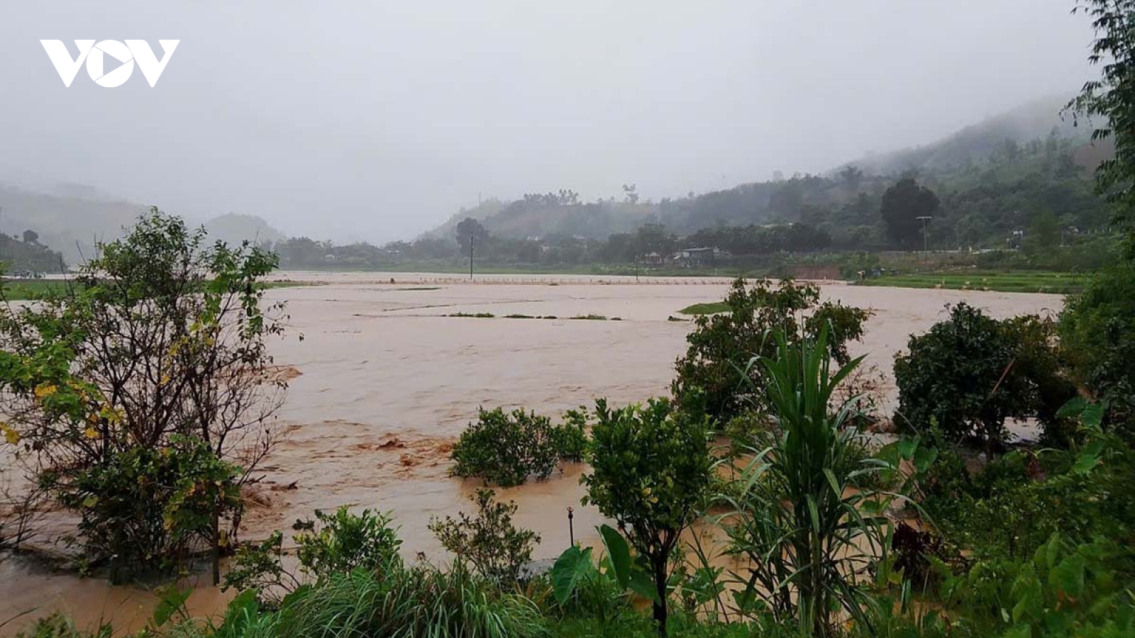 VOV.VN - Mưa lớn suốt đêm khiến nước suối Nậm Ban tại xã Púng Bánh (huyện Sốp Cộp cũ), tỉnh Sơn La dâng cao làm ngập và sạt lở 9 ngôi nhà. Hiện tỉnh lộ 105 đoạn qua bản Dồm, bản Kéo Hin vào trung tâm xã Púng Bánh nước ngập sâu, xe máy không thể qua lại, ô tô di chuyển cũng rất khó khăn.