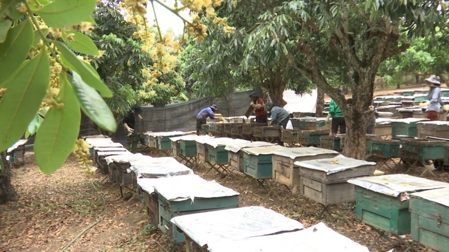 VOV.VN - Cùng với diện tích rừng rộng lớn và trên 10.000 hecta cây ăn quả, trong đó diện tích trồng nhãn chiếm tới 70%, huyện Sông Mã, tỉnh Sơn La có nguồn hoa phong phú, là môi trường lý tưởng để phát triển nghề nuôi ong lấy mật. Thời điểm này, khi vừa hết mùa hoa nhãn cũng là lúc người nuôi ong ở Sông Mã phấn khởi thu hoạch mật.