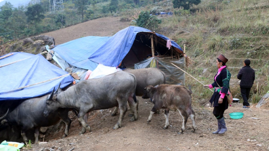 VOV.VN - Nhiệt độ về đêm và sáng sớm xuống thấp 1-2 độ C, rét đậm, rét hại bao phủ, người dân thị xã Sa Pa, tỉnh Lào Cai đã chủ động đưa đàn trâu, bò xuống vùng thấp để tránh rét.