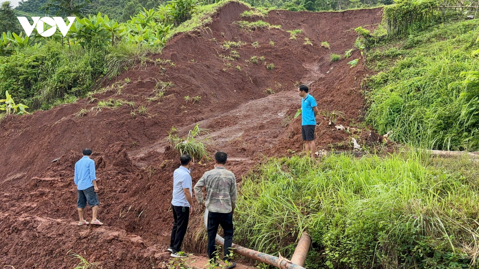 VOV.VN - Ảnh hưởng từ những trận mưa kéo dài nhiều ngày trước, cộng với lượng mưa lớn đêm qua, tại khu vực xã Huổi Một và xã Sốp Cộp, đoạn từ Km95-km113 trên QL.4G đã bị sạt lở lớn, với chiều dài khoảng hơn 15km.