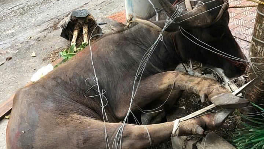 Trâu "điên" húc 2 học sinh đang tới trường ở Quảng Ninh