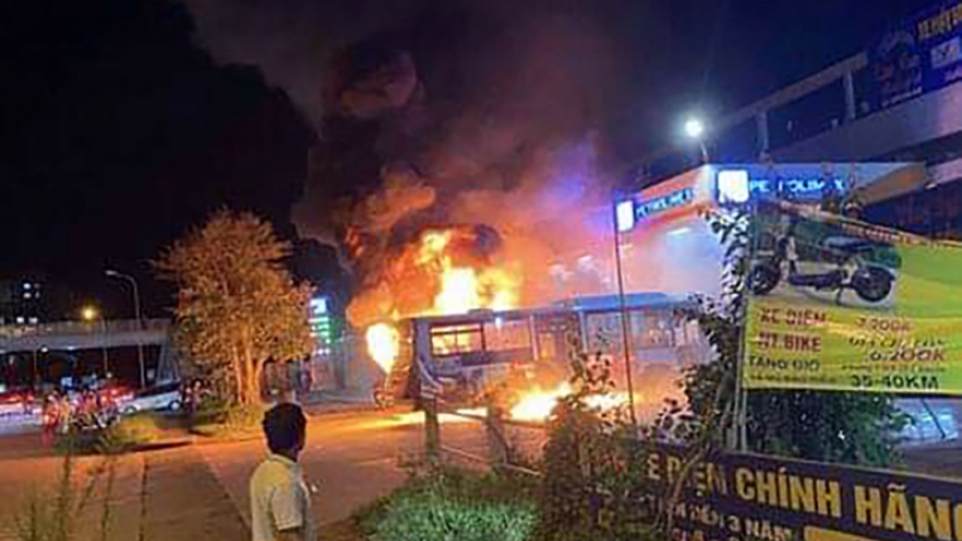 VOV.VN - Ngày 5/7, Đội Cảnh sát PCCC và CNCH Công an huyện Đông Anh (Hà Nội) cho biết, đơn vị vừa tổ chức chữa cháy, dập tắt thành công một vụ cháy xe buýt xảy ra tối 4/7.