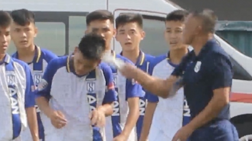 VOV.VN - HLV Ngô Quang Trường của U15 SLNA đã nghiêm khắc "chỉnh" học trò Ngô Anh Đức ngay trên sân trong trận đấu bán kết giải U15 Quốc gia 2023 giữa U15 SLNA và U15 Viettel.