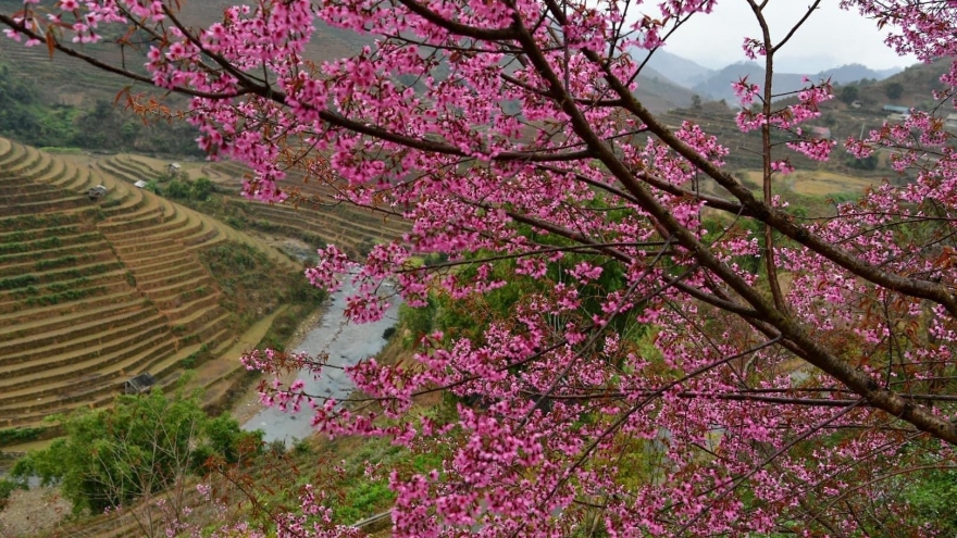 VOV.VN - Ghé thăm Mù Cang Chải (Yên Bái) vào những ngày cuối năm, du khách sẽ có cơ hội chiêm ngưỡng sắc hồng rực rỡ của hoa tớ dày (hay còn gọi là hoa đào rừng).
