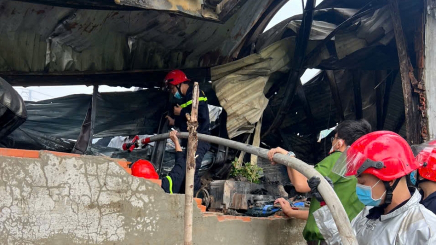 VOV.VN - Chiều 16/9, sau khi dập tắt hoàn toàn đám cháy tại một nhà xưởng kinh doanh hạt nhựa, sơn ở phường Thuận Giao,TP.HCM (trước đây là tỉnh Bình Dương), lực lượng chức năng đã phát hiện một thi thể nam giới bên trong.