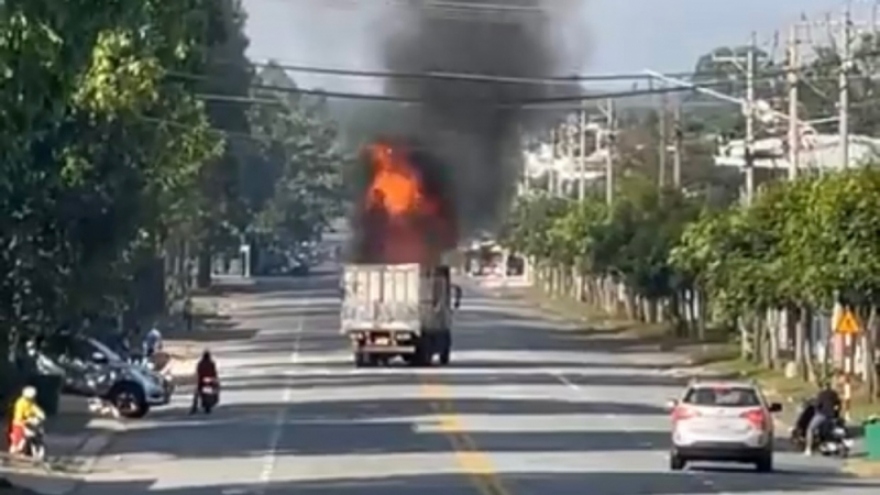 VOV.VN - Sáng nay (23/12), các ngành chức năng thị xã Bến Cát, tỉnh Bình Dương đang điều tra nguyên nhân vụ cháy xe tải khi đang lưu thông trong khu công nghiệp Mỹ Phước 2.
