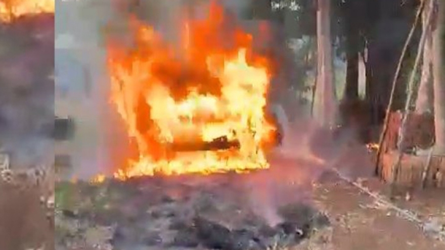 VOV.VN - Sáng 19/12, lực lượng chức năng huyện Bù Đốp, tỉnh Bình Phước khám nghiệm hiện trường, điều tra xác định nguyên nhân xe ô tô 7 chỗ của người dân bất ngờ bốc cháy trơ khung.