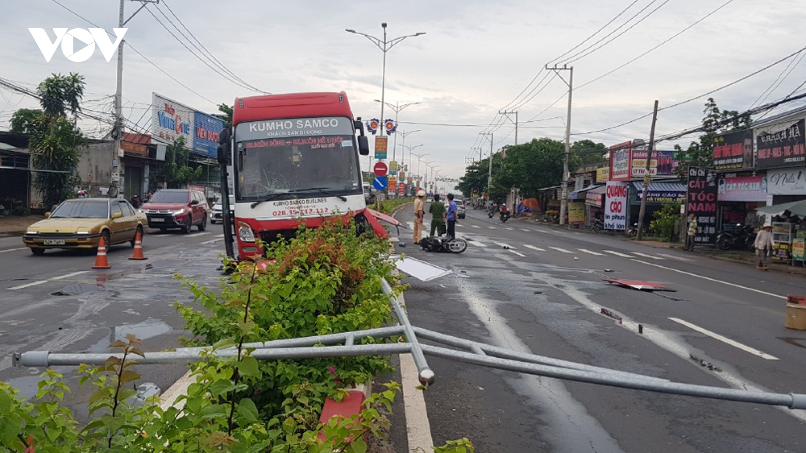 Xe khách va chạm với xe máy tại Bình Phước, hàng chục hành khách hoảng loạn