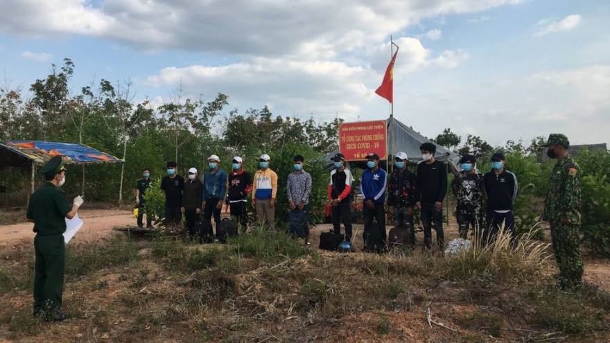 VOV.VN - Hôm nay (21/1), Đồn biên phòng Lộc Thiện-Bộ đội Biên phòng tỉnh Bình Phước thông tin, đã hoàn tất các thủ tục bàn giao 12 người có hành vi nhập cảnh trái phép cho ngành y tế địa phương để thực hiện cách ly theo quy định.