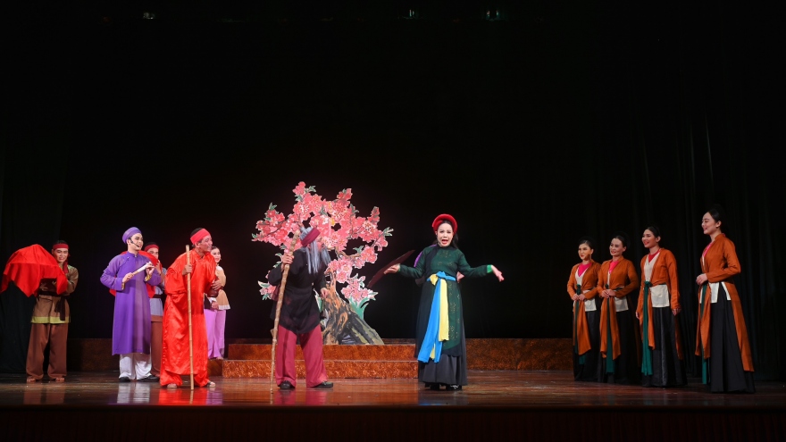 VOV.VN - Nhà hát Chèo Hà Nội vừa trình làng vở chèo cổ "Quan Âm Thị Kính" với phiên bản mới do đa phần các nghệ sỹ trẻ thể hiện. Sức hút của vở chèo cổ nổi tiếng cũng như thương hiệu “Chèo Hà Nội” đã thu hút sự quan tâm của khán giả, dẫn đến hiện tượng “cháy vé” trước giờ diễn.