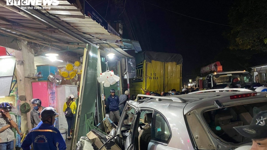 VOV.VN - Sau tiếng nổ chát chúa, xe tải va chạm với ô tô và tông hàng loạt xe máy trước khi đâm vào nhà dân, vụ tai nạn liên hoàn khiến ít nhất 7 người thương vong.