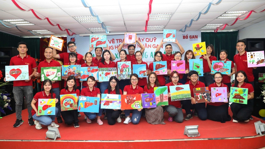 VOV.VN - Chiều 27/7, nhãn hàng Bổ gan Tâm Bình đã trao tặng 40 suất quà với tổng trị giá 23.600.000 đồng cho các bệnh nhân gan đang điều trị , tại Khoa Gan mật, Bệnh viện E. Số tiền được lấy từ “Quỹ chăm sóc lá gan” do nhãn hàng phát động vẽ tranh gây quỹ hưởng ứng Ngày viêm gan Thế giới (28/7).