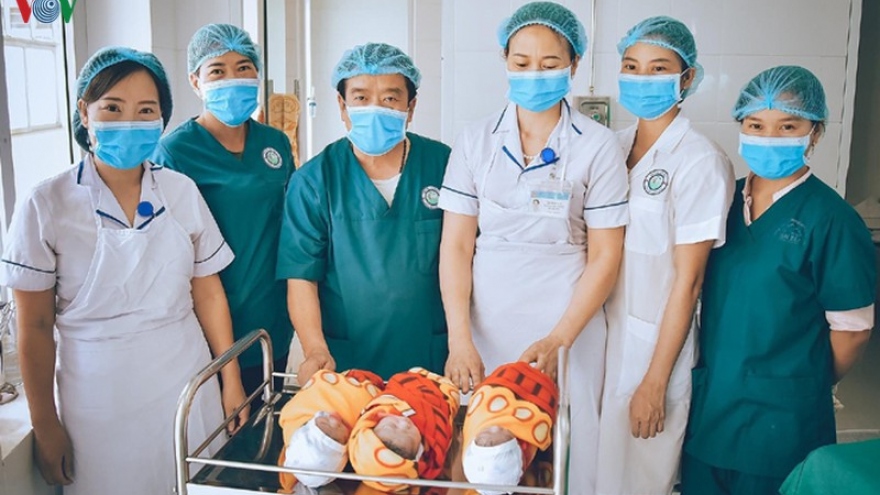 Trung tâm Y tế Mù Cang Chải (Yên Bái) phẫu thuật thành công ca sinh 3VOV.VN - Trung tâm Y tế huyện Mù Cang Chải, tỉnh Yên Bái lần đầu tiên phẫu thuật thành công ca sinh 3. Các bé gái chào đời nặng 1,4 kg, 1,7kg và 2kg.