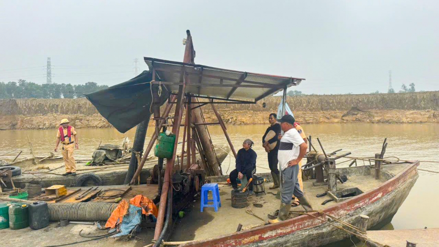 VOV.VN - Công an tỉnh Bắc Giang phát hiện 4 tàu của Công ty TNHH Quỳnh Phương vi phạm an toàn giao thông, trong đó 3 tàu không có đăng ký và đăng kiểm đang hoạt động khai thác cát tại khu vực sông Cầu.
