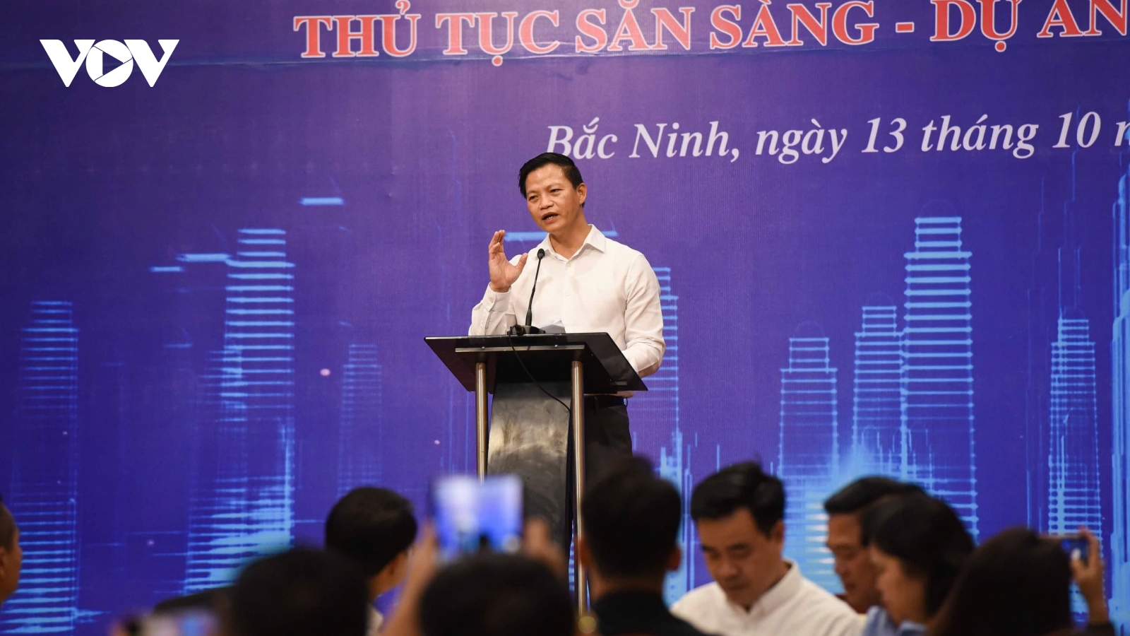VOV.VN - Chủ tịch UBND tỉnh Bắc Ninh Vương Quốc Tuấn nhấn mạnh: "Muốn doanh nghiệp vững mạnh thì cần tạo ra môi trường sản xuất kinh doanh thuận lợi và lành mạnh. Để đạt được đó, nhiệm vụ hàng đầu là tạo ra thể chế pháp lý minh bạch rõ ràng".