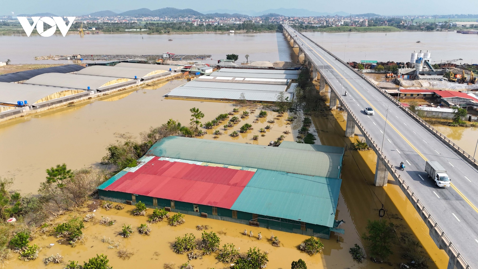VOV.VN - Mức nước sông Đuống đang có chiều hướng rút dần, để lại khung cảnh tan hoang dưới chân cầu Bình Than (Bắc Ninh) nơi có hàng loạt công trình như bến bãi, nhà xưởng, trang trại lợn và trạm trộn bê tông không phép, xây dựng trên đất nông nghiệp.