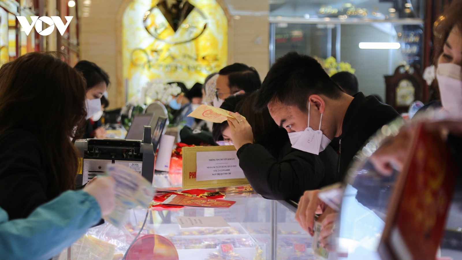 VOV.VN - Sáng sớm ngày 10/2, nhiều người dân đã nườm nượp đến các cửa hàng vàng tại TP. Từ Sơn (Bắc Ninh) để mua vàng cầu may trong ngày vía Thần Tài (mùng 10 tháng Giêng âm lịch).