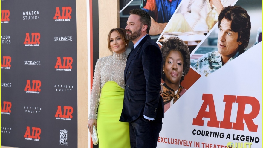 Jennifer Lopez và chồng trẻ ngọt ngào "khóa môi" tại sự kiện ra mắt phimVOV.VN - Jennifer Lopez trang điểm màu nude tinh tế, diện đầm gợi cảm sánh đôi tình tứ bên chồng trẻ - Ben Affleck tại buổi ra mắt phim "AIR" ở Los Angeles.