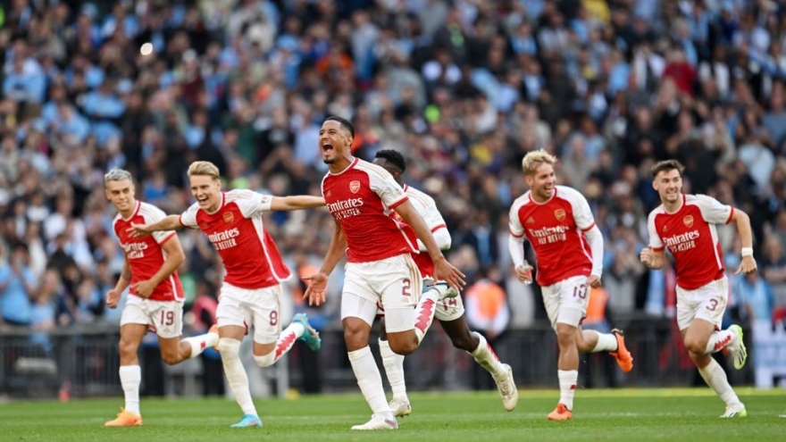 VOV.VN - Arsenal giành Siêu cúp Anh 2023 theo kịch bản không tưởng khi ghi bàn gỡ hòa ở phút 90+9 và sau đó giành chiến thắng 4-1 trong loạt đá luân lưu trước Man City.