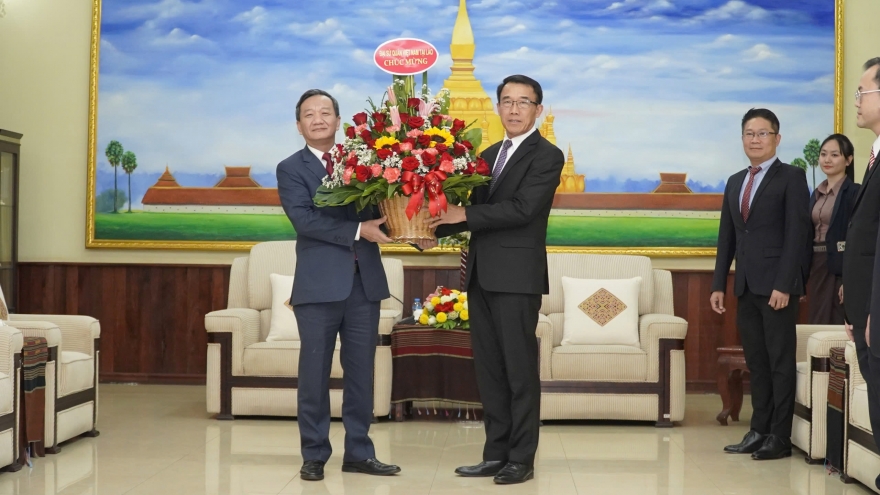VOV.VN - Trong những ngày qua, Đại sứ Việt Nam tại Lào Nguyễn Minh Tâm cùng đoàn cán bộ Đại sứ quán Việt Nam đã đến Ban Đối ngoại Trung ương Đảng Nhân dân Cách mạng Lào và Bộ Ngoại giao chúc mừng 49 năm ngày Quốc khánh nước CHDCND Lào (02/12/1975-02/12/2024).