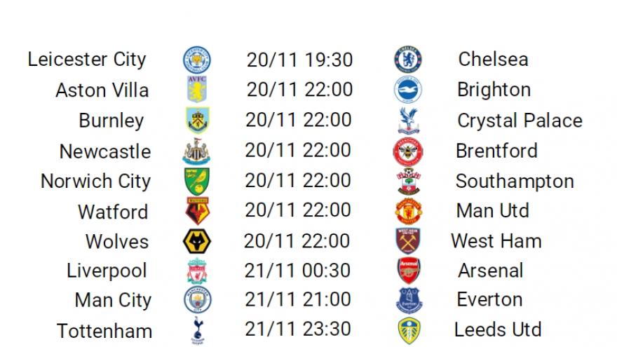 VOV.VN - Theo lịch thi đấu bóng đá hôm nay 20/11, Liverpool sẽ đọ sức với Arsenal trong khi MU có chuyến làm khách trước Watford tại vòng 12 Ngoại hạng Anh.
