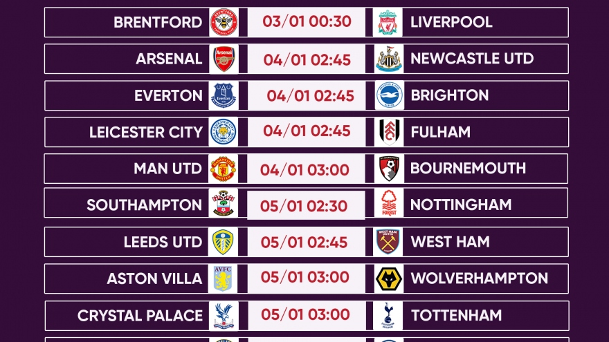 VOV.VN - Lịch thi đấu vòng 19 Ngoại hạng Anh 2022/2023, trận cầu tâm điểm là màn so tài của Chelsea với Man City. Trong khi đó, Liverpool và Arsenal gặp những đối thủ khó chịu.