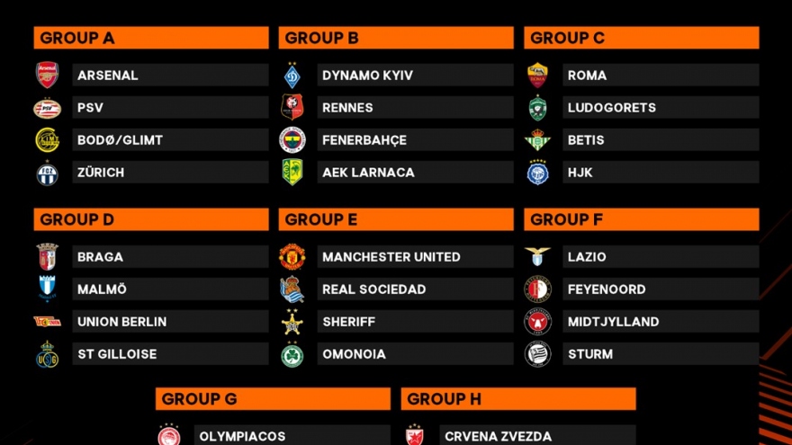 Kết quả bốc thăm Europa League 2022/2023: MU và Arsenal dễ thởVOV.VN - Theo kết quả bốc thăm vòng bảng Europa League 2022/2023 thì MU và Arsenal nằm ở bảng đấu dễ thở.