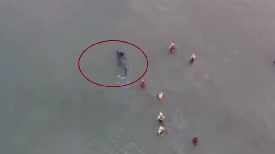 VOV.VN - Một chú cá mập có lẽ gặp vấn đề về sức khỏe nên chỉ bơi quẩn quanh ở vùng nước nông của bờ biển Yorkshire (Anh). Lực lượng cứu hộ đã ra tay cứu giúp.