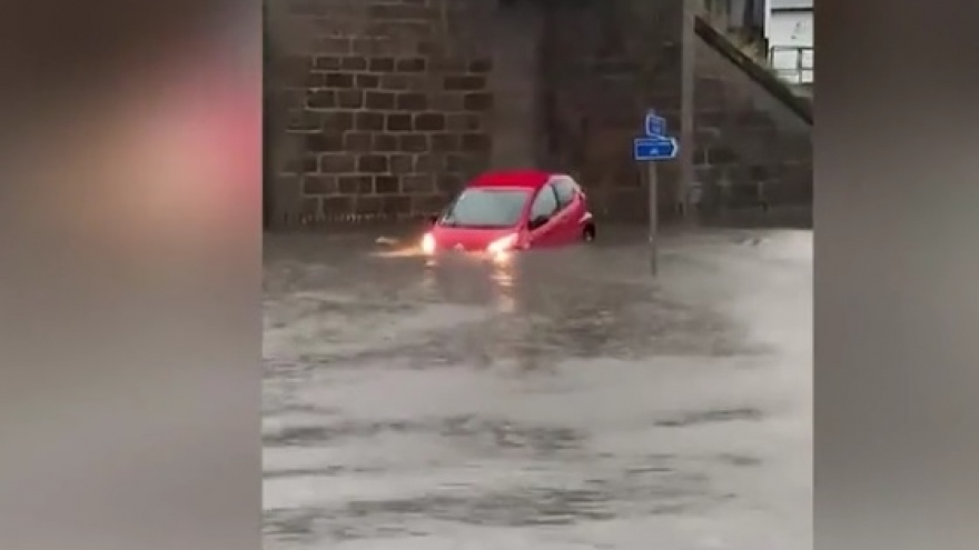 VOV.VN - Lũ lụt ở Scotland khiến nhiều ô tô bị ngập chìm trong nước. Có xe cố chạy qua nước lũ nhưng rốt cục bị chết máy và nổi lềnh bềnh.