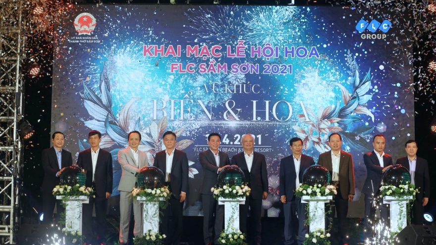VOV.VN - Lễ hội “Vũ khúc Biển & Hoa” do UBND thành phố Sầm Sơn và Tập đoàn FLC phối hợp tổ chức vừa chính thức khai mạc đầy ấn tượng tại quần thể FLC Sầm Sơn ngày 10/4, với chương trình nghệ thuật đặc sắc và màn trình diễn pháo hoa kéo dài 15 phút từ khách sạn FLC Grand Hotel Sam Son.