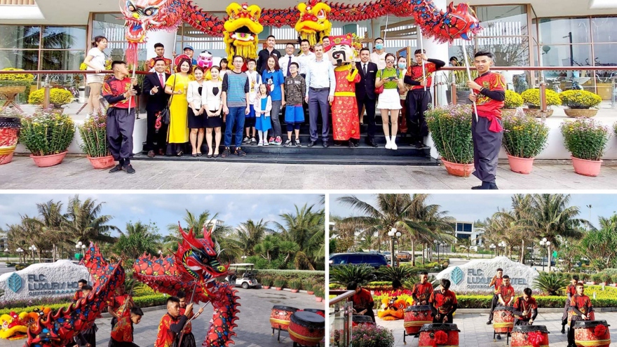 VOV.VN - Hàng vạn du khách thích thú thưởng thức ẩm thực chợ quê, đi dạo ngắm hoa xuân, xin chữ cầu may, thử thách với các trò chơi dân gian hay lên chùa cầu phúc đầu năm….tại các quần thể từ Bắc vào Nam của FLC Hotels & Resorts.
