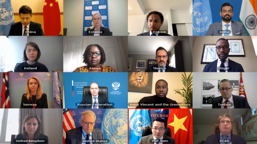 VOV.VN - Trên tư cách Chủ tịch Hội đồng Bảo an Liên Hợp Quốc (HĐBA LHQ), Việt Nam ngày 16/4 đã chủ trì cuộc họp trực tuyến của Hội đồng bảo an để công bố thông qua các Nghị quyết 2570 và 2571 liên quan đến tình hình Libya. Hai Nghị quyết đều được nhất trí thông qua với 15/15 phiếu thuận.