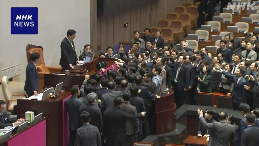 VOV.VN - Hôm 27/12, Chủ tịch Quốc hội Hàn Quốc đưa ra một kết luận gây tranh cãi về việc thông qua dự thảo nghị quyết luận tội quyền Tổng thống Han Duck Soo do phe đối lập đệ trình.