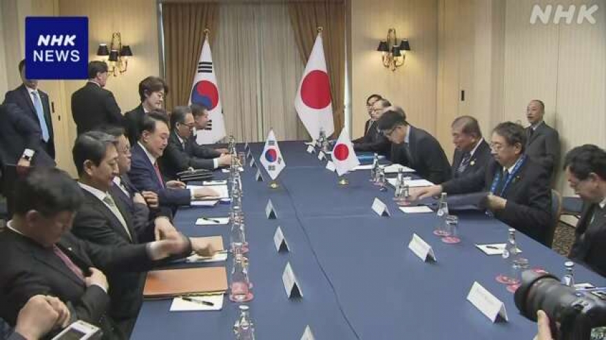 VOV.VN - Bộ Ngoại giao Nhật Bản cho hay, sáng 17/11, tại Lima - thủ đô Peru, nhân Hội nghị thượng đỉnh APEC, Thủ tướng Nhật Bản Ishiba Shigeru và Tổng thống Hàn Quốc Yoon Suk-yeol đã tiến hành hội đàm, trao đổi, thống nhất về nhiều vấn đề song phương và đa phương.