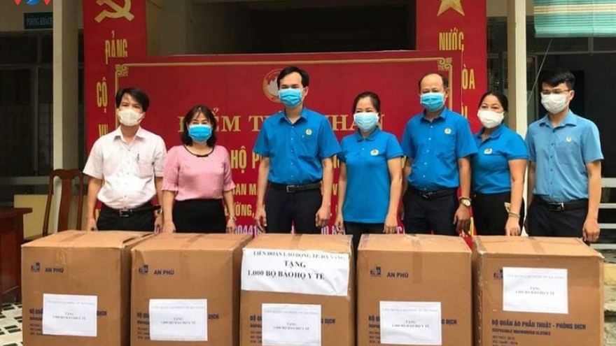 VOV.VN - Liên Đoàn Lao động thành phố Đà Nẵng Đà Nẵng tổ chức trao 3000 bộ đồ bảo hộ y tế và 150 giường xếp tặng Trung tâm Y tế các quận Liên Chiểu, Cẩm Lệ