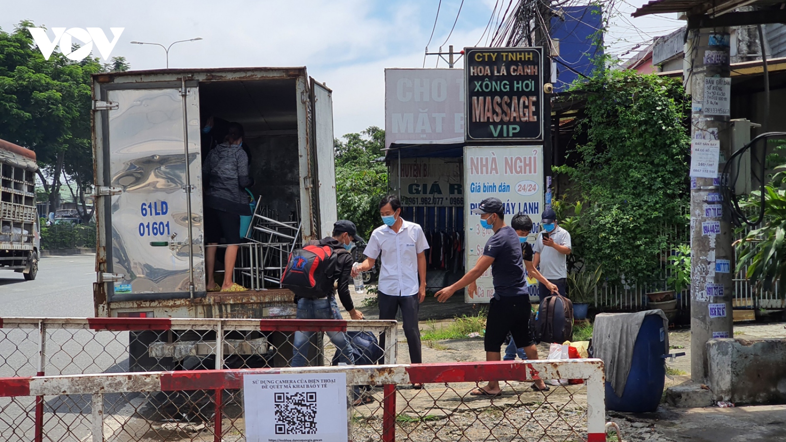 VOV.VN - Đội CSGT Bình Triệu thuộc Phòng CSGT đường bộ - đường sắt (PC08), Công an TP.HCM vừa kịp thời phát hiện, chặn lại một xe tải có mã QR “luồng xanh” chở 6 bệnh nhân mắc COVID-19 vừa hoàn thành cách ly từ Bình Dương về TP.HCM.
