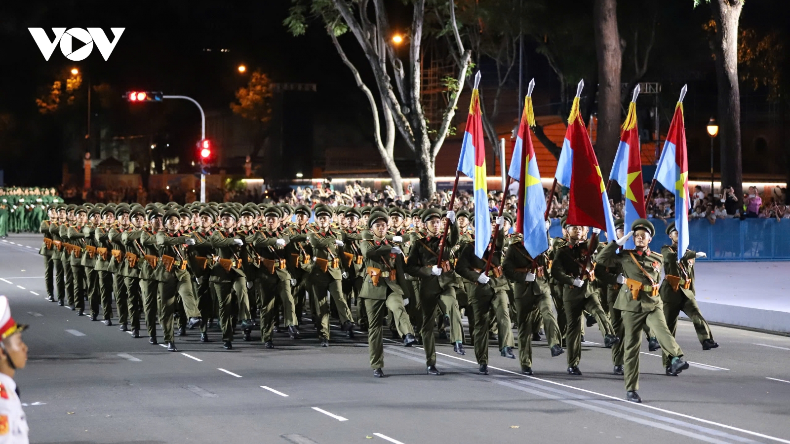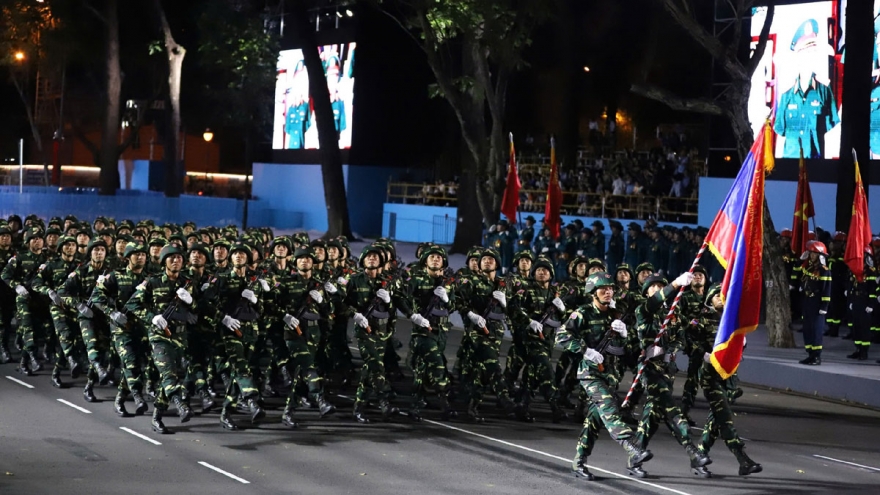 VOV.VN - Tối 22/4, các lực lượng tham gia diễu binh, diễu hành tại Lễ kỷ niệm 50 năm Ngày Giải phóng miền Nam, thống nhất đất nước tiếp tục tổng hợp luyện lần thứ 2 trên đường Lê Duẩn, Quận 1, TP.HCM. Đặc biệt lần đầu có sự tham gia của lực lượng quân đội Lào và Campuchia.