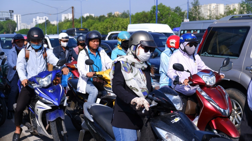 VOV.VN - Từ sáng đến trưa 5/4, nhiều tuyến đường khu vực ở cửa ngõ phía Đông và phía Tây TP.HCM luôn trong cảnh đông đúc phương tiện người dân về quê nghỉ giỗ Tổ Hùng Vương hoặc du lịch.