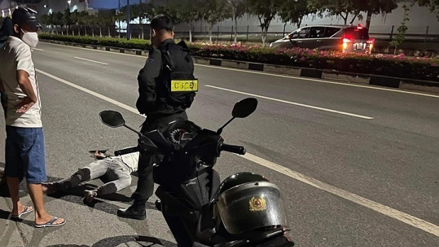 VOV.VN - Xe máy biển xanh do một cảnh sát cơ động điều khiển đuổi theo một xe máy khác trên đường ở Bình Dương với tốc độ cao, sau đó đạp ngã xe khiến một thanh niên phải nhập viện cấp cứu.