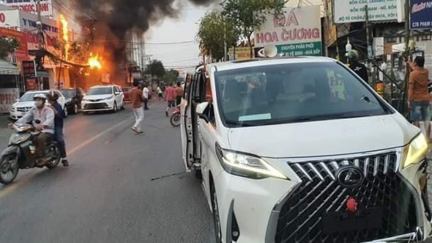 VOV.VN - Sau một tiếng nổ lớn, một trạm điện trên đường Phạm Hùng thuộc xã Bình Hưng, huyện Bình Chánh, TP.HCM bất ngờ bốc cháy dữ dội rồi lan sang một showroom ô tô kế bên.