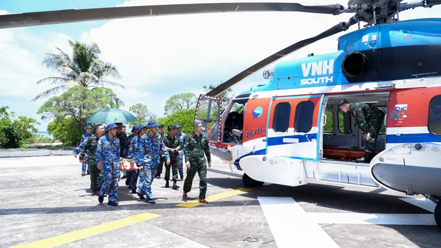 VOV.VN - Chiều 31/7, trực thăng số hiệu VN-8619 của Binh đoàn 18 đã hạ cánh an toàn, đưa 2 bệnh nhân nặng từ huyện đảo Trường Sa (Khánh Hòa) cấp cứu tại Bệnh viện Quân y 175 – Bộ Quốc phòng tại TP.HCM.