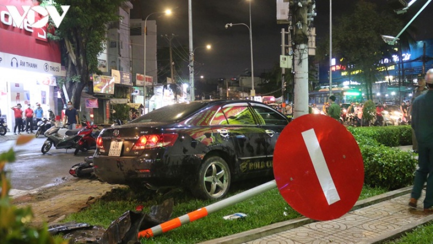 Ô tô con đâm hàng loạt xe máy khiến nhiều người bị thươngVOV.VN - Nhiều xe máy đang dừng đèn đỏ ở ngã tư Ung Văn Khiêm - Xô Viết Nghệ Tĩnh, bất ngờ bị xế hộp đâm thẳng khiến nhiều người bị thương.