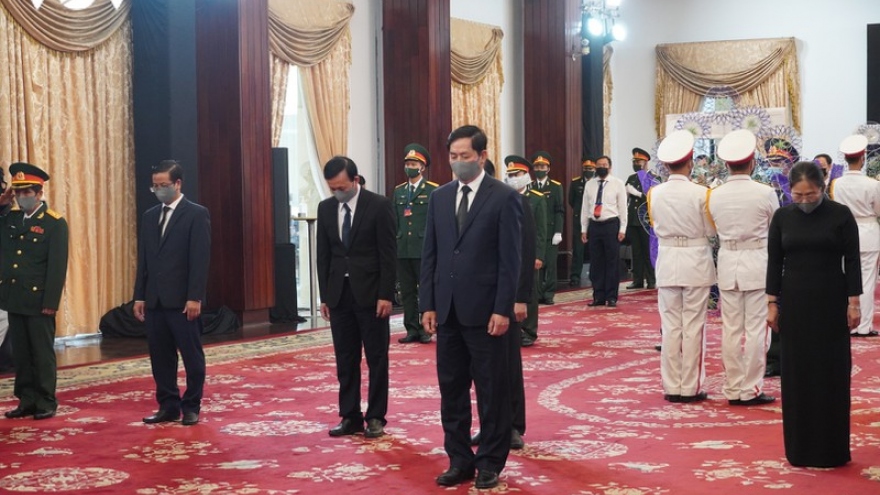 Ảnh: Lễ viếng nguyên Tổng Bí thư Lê Khả Phiêu tại TPHCMVOV.VN - Các lãnh đạo, nguyên lãnh đạo các cơ quan ở TPHCM đến Hội trường Thống Nhất để viếng nguyên Tổng Bí thư Lê Khả Phiêu.