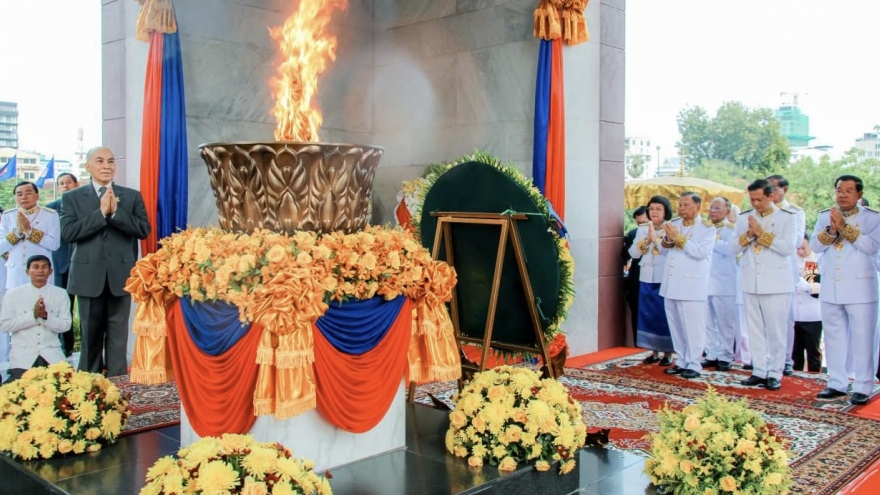 VOV.VN - Hôm nay (9/11), tại thủ đô Phnom Penh, đã diễn ra các hoạt động long trọng tổ chức kỷ niệm ngày Quốc khánh Vương quốc Campuchia, đánh dấu 70 năm đất nước Chùa Tháp giành độc lập (09/11/1953 - 09/11/2023) từ thực dân Pháp.