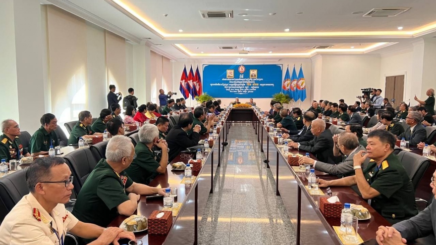 VOV.VN - Chiều 3/11, tại Thủ đô Phnom Pênh, Phó Chủ tịch đảng Nhân dân Campuchia ( CPP), Chủ tịch Hội Hữu nghị Campuchia - Việt Nam Samdech Men Sam An đã tiếp Đoàn đại diện cựu quân tình nguyện, cựu chuyên gia Việt Nam và gia đình có người thân chiến đấu hy sinh trên chiến trường Campuchia.