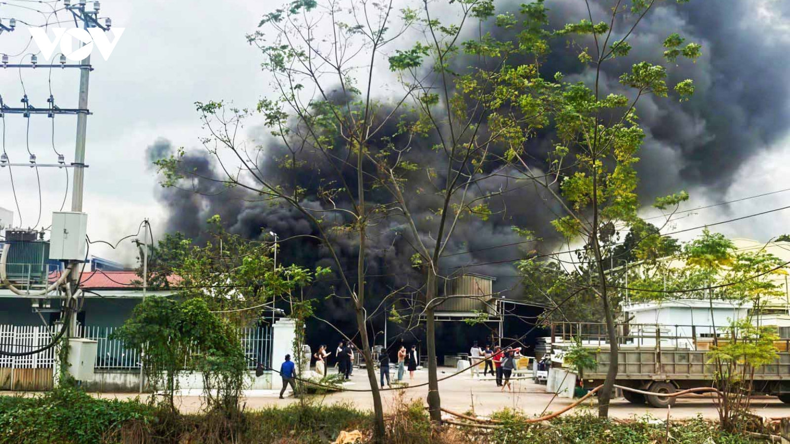 VOV.VN - Ngày 24/12, một vụ cháy lớn đã xảy ra tại khu vực xưởng sản xuất tôn xốp, tấm panel của công ty cổ phần Thép Việt Xô, xã Tân Dĩnh, tỉnh Bắc Ninh nhưng rất may không gây thiệt hại về người.