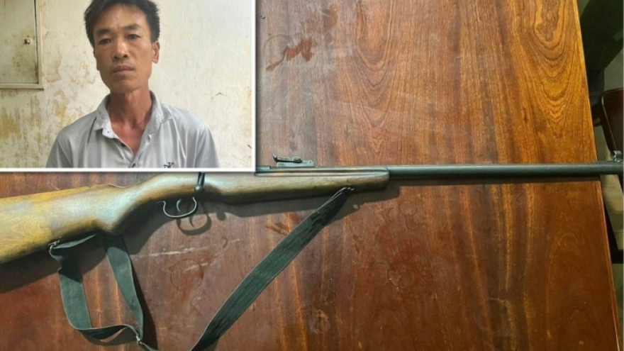 VOV.VN - Sau khi xảy ra mâu thuẫn với một người đàn ông tại một quán ăn đêm trên địa bàn xã Tân Sơn (huyện Lục Ngạn, Bắc Giang), Hoàng Văn Vinh về nhà vác súng ra đe dọa.