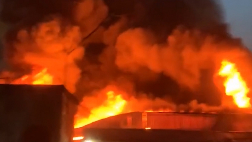 VOV.VN - Một vụ hỏa hoạn đã bùng phát tại nhà xưởng ở khu tập thể Diêm Gỗ Cầu Đuống, phường Việt Hưng, Hà Nội. Ngọn lửa bùng phát dữ dội cháy lan sang nhiều khu vực bên cạnh khiến nhiều tài sản bị thiêu rụi.